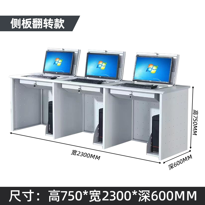 側(cè)板翻轉(zhuǎn)電腦桌三人位